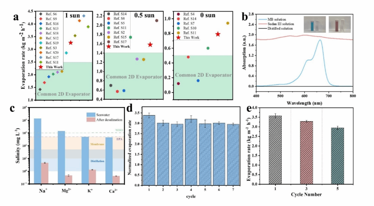 连续7天循环使用性能稳定,5次浸泡-蒸发循环后效率仅下降14%