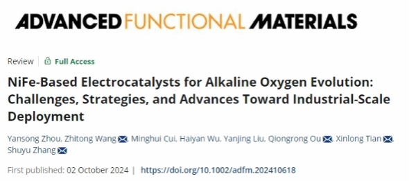 近日,海洋科学与工程学院王志同副教授所在团队在能源化学领域Top期刊Advanced Functional Materials (IF=18.5)上发表题为“NiFe-Based Electrocatalysts for Alkaline Oxygen Evolution: Challenges, Strategies, and Advances Toward Industrial-Scale Deployment”的研究论文。博士研究生周岩松为论文第一作者,william威廉亚洲官方王志同副教授和田新龙教授为论文共同通讯作者。