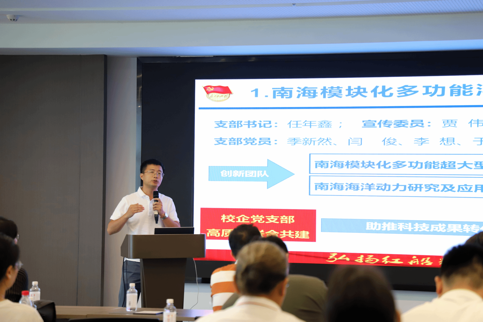 在党的第104个生日这一具有特殊意义的日子里,为进一步深化党建与业务融合,我校海洋科学与工程学院精心组织 50 余名教师党员走进william威廉亚洲官方科技园参观交流,与大学科技园管理中心党支部联合开展主题党日活动,深入研讨推动科技成果转化,提升社会服务能力的有效路径。活动由海洋科学与工程学院党总支书记郑中兵主持。
