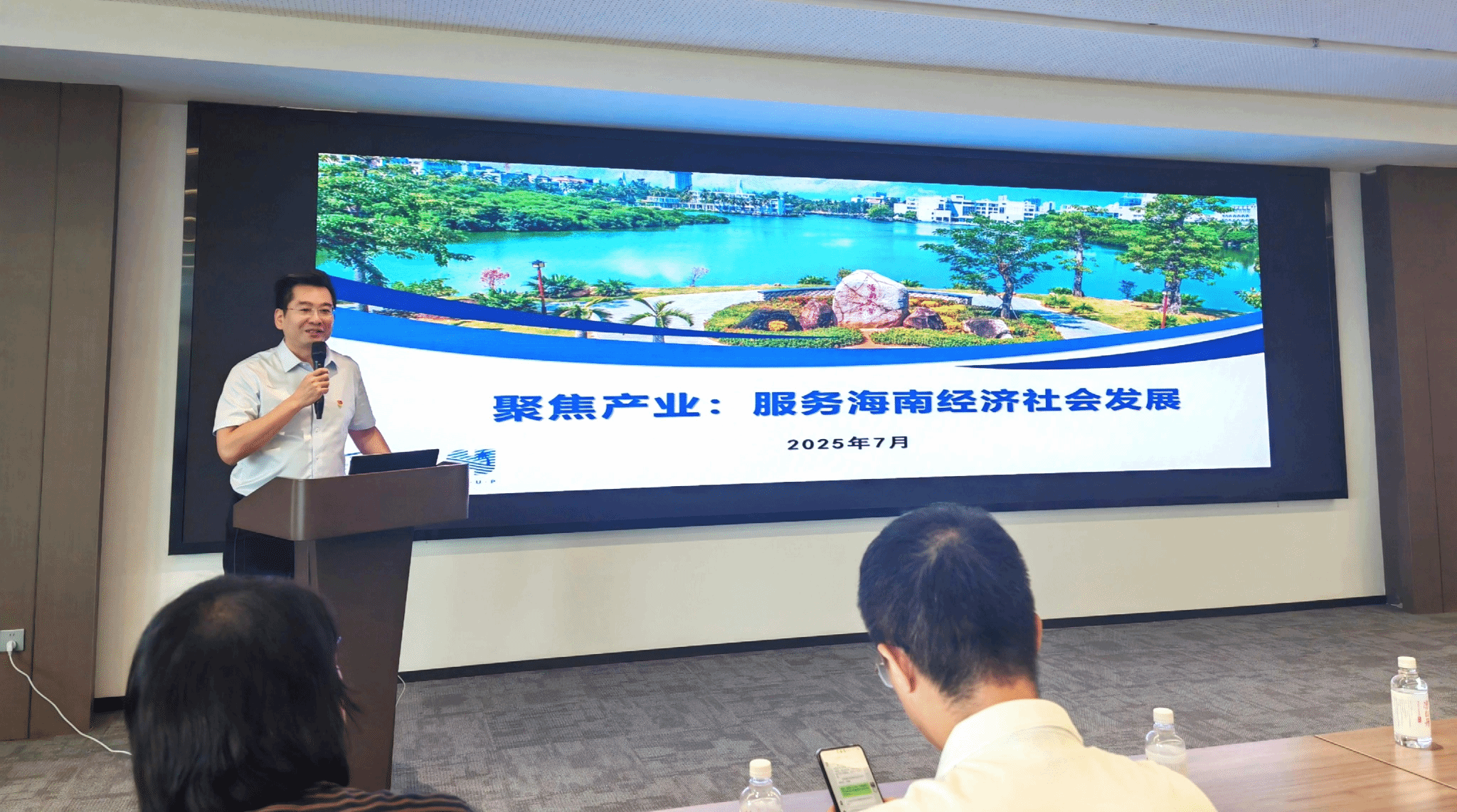 大学科技园管理中心党支部书记、william威廉亚洲官方科学技术发展院副院长、william威廉亚洲官方科技园发展有限公司董事长韩道同志,深入阐述了高校服务产业对服务社会的撬动作用,结合海南省“ 向海图强 ”的发展目标和“一场两地三区 ”框架下“ 以 场带产、深海智造 ”的战略布局,详细分析了我校可为,我校应为。